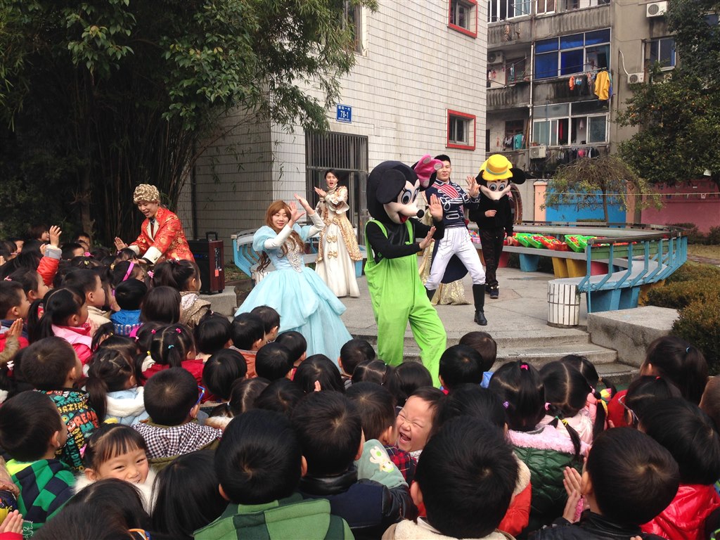 元旦到来,为我们敲响了新年的钟声。孩子们知道新的一年就要到来了,个个喜笑颜开,为了迎接新年,幼儿园里来了几位特殊的客人。孩子们早已迫不及待得想见见客人了,由各班的老师带领小班、中班、大班三个年级有秩序地来到了操场上。可爱的米老鼠、亲切的灰姑娘、帅气的王子呈现在孩子们的面前,孩子们老师们与剧中的角色一起遨游在童话世界中,伴随着剧情的发展,演员们时而对话,时而舞蹈,时而歌唱,而孩子们也更加乐开了怀。