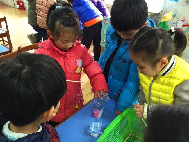 孩子们在一日活动中进行科学探究,既开发了孩子的智力、培养了孩子们的学习兴趣,又让孩子们在玩中相互合作、相互交流、相互探讨,从而使他们的语言表达能力、思维想象能力、动手操作能力等均得到锻炼和提高,让幼儿感到科学并不遥远、科学就在我们身边。