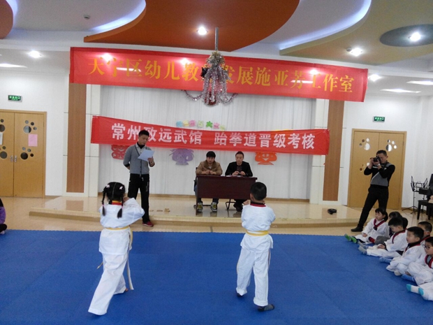 听,从音体室传来了此起彼伏的“嘿!哈!”声音,原来是新城逸境幼儿园里的小小跆拳道选手们本着孩子自愿报名的原则正在举行考级活动。孩子们一招一式有模有样,整齐的队形,挺拔的身姿,严肃的态度,响亮的口号,在寒冷的冬日幻化成一道靓丽动人的风景。家长们反映:这些小家伙自从学习了跆拳道,身体素质加强了,纪律性好多了,不畏艰难的品质也慢慢体现出来了,在行为礼貌上也比以前有进步。