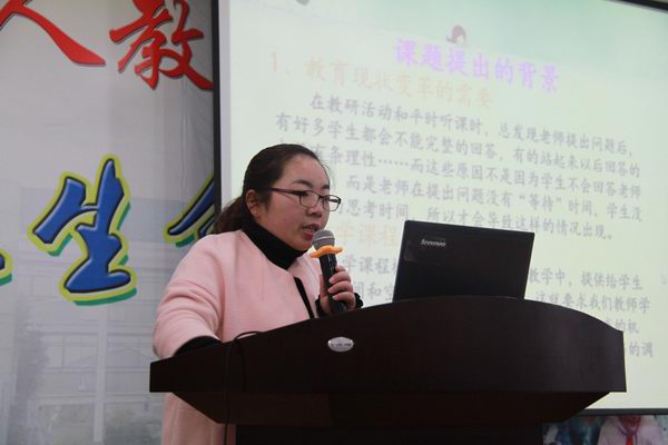 四位老师的微型课题研究的问题都来自于教学实践,有的关注的是英语课堂新授导入问题,有的研究的是低年级数学课堂“提问等待”问题,有的针对科学课学生科学语言的表达展开研究。这些课题都具有共同的特点,即切口相对较小,研究具有可操作性。交流过程中,他们向全校老师汇报了自己课题的研究过程,重点阐述了“怎么做”和“做得怎么样”。每位老师在汇报之后,还与台下的老师进行互动交流,进行观点碰撞。