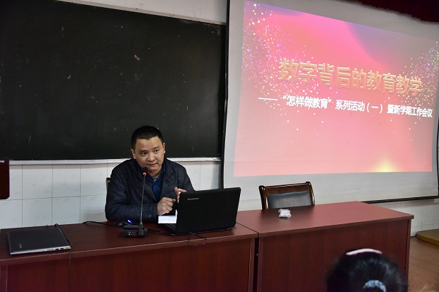 伴随着早春的习习微风,携带着猴年的喜气洋洋,2月19日下午,浦前小学“‘数字背后的教育教学’——2015年度第二学期开学工作会议”在阶梯教室举行。会议在陈慧霖校长的温馨祝福下拉开序幕,区教师发展中心的金东旭主任、邓伟和薛红老师也全程参与,会场气氛热烈。