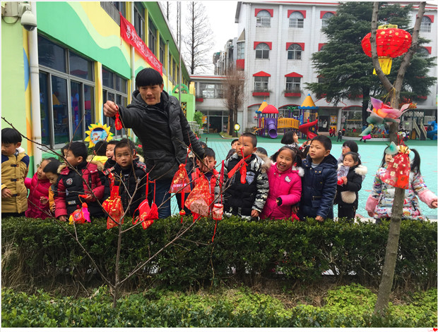 在主持人的引领下,首先进行了升国旗仪式,孩子们边唱国歌边行注目礼,冉冉升起的五星红旗在蓝天的衬托下特别鲜亮。园领导华老师和各班的小代表们纷纷畅所欲言,表达了自己在新学年中美好的祝福愿望;大班的小朋友孩子在寒假中编排了“新年快板”,博得了阵阵掌声;最令人激动的时刻是接近尾声“挂心愿袋,寄希望”活动。在新年音乐声中,孩子自己在校园的小树枝上挂上了自己制作的小心愿袋,脸上洋溢着幸福的笑容。