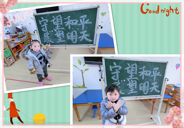 我们通过这样的主题活动能在孩子们幼小的心灵中留下记忆,让他们知道-----充满爱的世界才是我们能幸福生活的所在。为了更美好的明天,我们要让每一天都成为“和平日”,和平从我做起,从小事做起,从身边做起。让和平成为永恒的美丽!