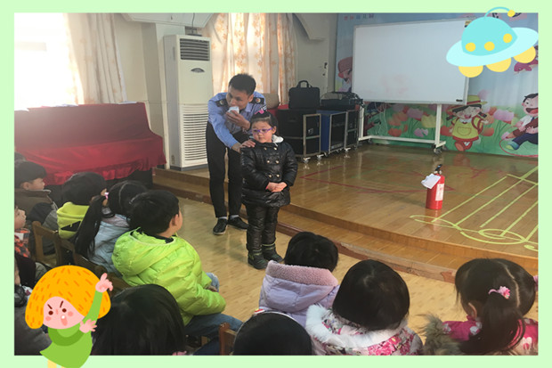 徐警官叔叔结合生活中有关火的案例,生动具体地讲解了求救方法和火场逃生的基本方法,并就灭火器使用进行了现场教学,同时强调了用火、用电的安全。针对幼儿平时积累的生活经验,徐警官叔叔与孩子讨论了生活中应该掌握的消防安全知识与应该注意的安全小细节。孩子们积极主动地与徐警官叔叔进行互动,提出很多实用的方法,比如提醒爸爸不抽烟、不独自打开煤气灶、不玩打火机以及如遇到火灾的自我保护方法等。