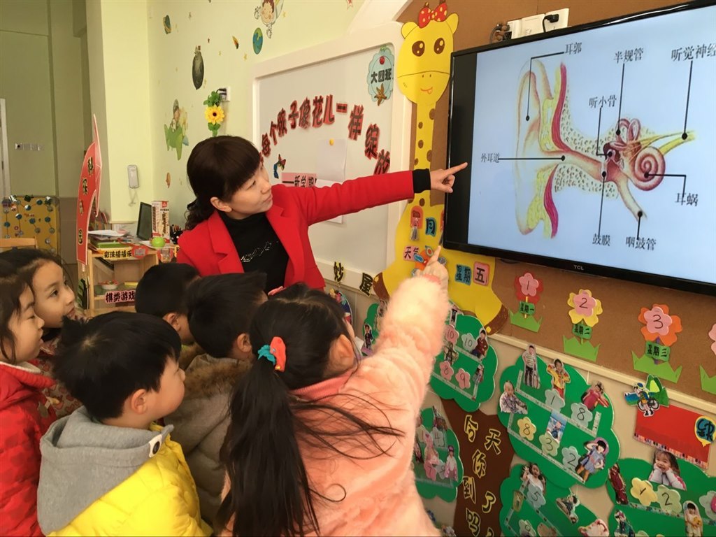 在全国爱耳日来临之际,为了让我们大四班的小朋友更好地了解爱耳、护耳的方法,我们开展了“保护小耳朵”的主题活动。我们两位老师分别从耳朵的构造讲起,让小朋友们了解了耳朵由外耳、中耳、内耳组成。重点讲解了如何保护耳朵,防止听力受损。同时通过观看“保护耳朵”的动画视频,告诉小朋友们耳朵和与眼睛一样,需要细心呵护,要保持良好的视听环境,培养聆听习惯,正确保持耳部卫生。