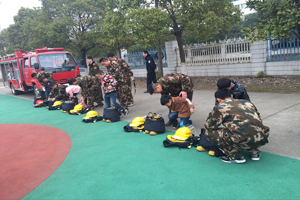 演练结束,消防员叔叔还为大班小朋友安排了“我是小小消防员”的体验活动。郑陆消防队王队长带领孩子们近距离参观了消防车,了解其主要装备,还讲解了火灾初期如何灭火、如何逃生自救等消防知识。帅气的消防员为大家表演了穿战斗服,他们只用了不到一分钟的时间就整装完毕,把孩子们都看呆了。孩子们在消防员叔叔的帮助下也穿上战斗服,扛起灭火枪,那心情别提有多激动啦!这样的亲身体验让小朋友更直观的体会到了消防的重要性,对消防员叔叔的尊敬之情再度升华。