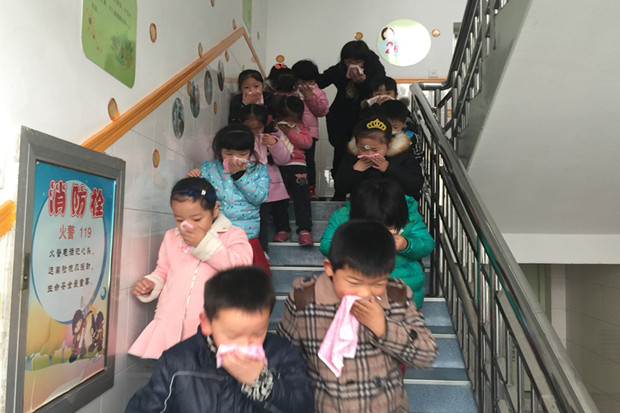 随着警报声响起,刚才还专注于游戏的孩子们在短短的几秒钟内就在教师指挥下迅速做出了反应,用湿毛巾捂住口鼻,躬着身子迅速撤离教室,按紧急预案的疏散线路有序疏散到操场、跑道、小山坡等安全地带。孩子们在有惊无险的训练下,熟悉了逃生路线,在危急的信号中有序并快速地逃离现场。此次演练全员参加,达到了预期效果。