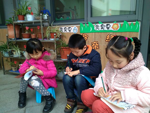 红梅幼儿园的教师们从班级实际环境出发,充分利用室内、廊沿、活动室一角,让春色绽放在幼儿园的每个角落。各个班级的自然角,呈现出一派生机盎然的景象。孩子们在这小小的角落中寻找到许多的惊喜和快乐:小种子发芽了,小蝌蚪、小金鱼游出来了,美丽的花儿开放了,在孩子们的观察记录本里还描绘着好多好多孩子们观察到的秘密呢。