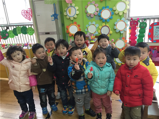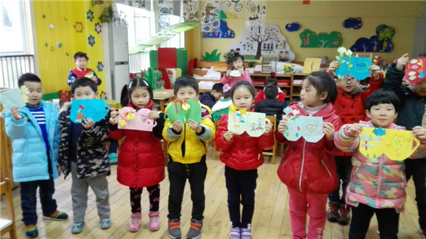 中班的孩子给妈妈制作了一张贺卡,每一个孩子脸上都是甜甜的笑容,尽管制作贺卡的步骤有点复杂,但是孩子们有信心做好。