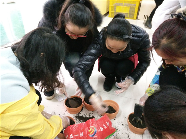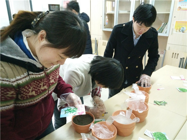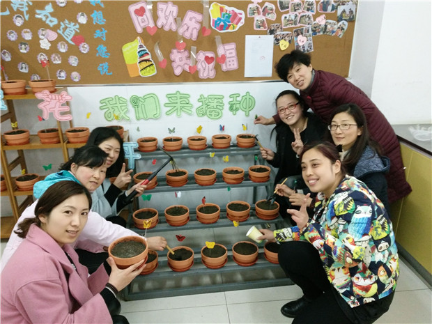 在种植活动中,全体参加的老师团结一致,带上花盆、泥土、种子和齐备的种植工具,齐心协力,精心栽植,运水、放种子、填土、浇水,种植场面热闹非凡。活动中,老师们说道,幼儿园的孩子就像幼苗一般,只要给它好的土壤,多给予关怀、照顾,它会还以我们另一种精彩。大家一起把这些充满爱、充满期望的花苗种子种在我们的幼儿园,最后,我们一定能绿色留住,让爱永存在校园。