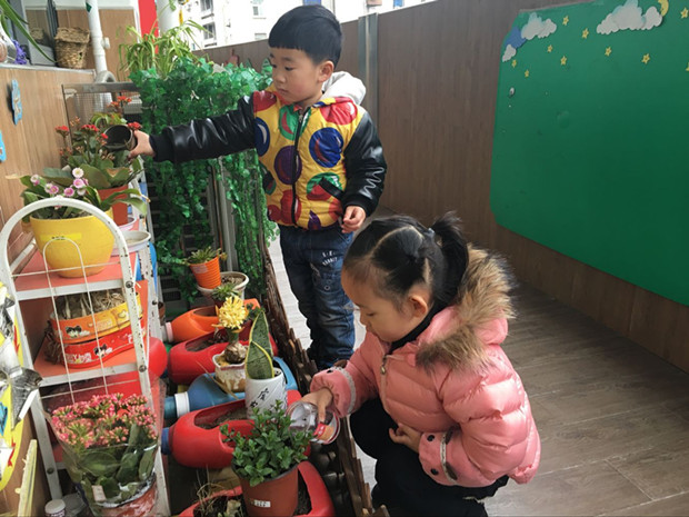 孩子们在老师的带领下,来到了种植区,为小树苗松土、浇水、清理环境,充满爱心的行动表达了他们对树木花草的爱护和祝福。收获着种植的辛劳与快乐。