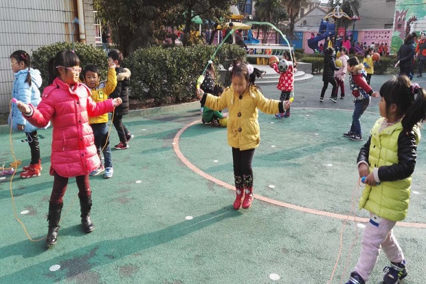 晨间户外活动是幼儿在幼儿园一日生活的开端,也是幼儿园体育活动的一个重要组成部分。而孩子们的探索活动应从身边的实物开始,生活中有许多不起眼的东西,其中往往蕴涵着丰富的文化内涵。跳绳、呼啦圈、皮球都是孩子们最常见的体育器械,但它们玩法单一,为此朝阳幼儿园将两者巧妙结合,开展了“一物多玩 童趣飞扬”晨间户外活动,引导孩子对跳绳、呼啦圈、皮球的玩法进行探索,从而进一步激发幼儿对户外活动、探究活动的兴趣,发展幼儿的想象力和创造力。
