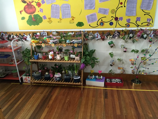 自然角创设活动中,各班老师积极参与、科学规划,充分发挥本班儿童的主官能动性及丰富的家长资源,同时在内容选择、容器设计、规划布局中都遵循了季节性、丰富性、艺术性、环保性、探索性、参与性的原则,并且融入班级特色文化,打造出了各自与众不同的自然角魅力。