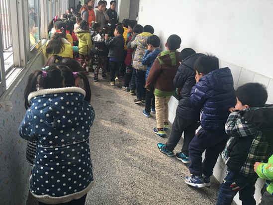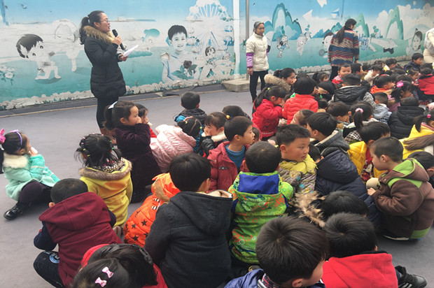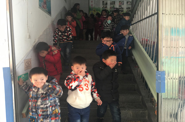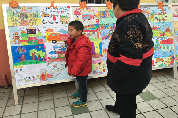 演习活动前,教师们针对幼儿火场逃生、救援疏散等事项,开展了大班“幼儿消防绘画展”活动。上午9:45分,孩子们正在进行区域活动,忽然听到紧急的警报声,各班教师迅速按紧急预案的疏散线路带领幼儿捂住口鼻,猫着身子,分两道楼梯迅速且有序下楼。很快孩子们集中到操场安全地带,教师迅速地清点人数,并向总指挥报告,整个疏散活动只用了2秒。演习结束后张辛老师还针对本次演习做了总结,让孩子们认识到火灾发生时要如何保护自己。