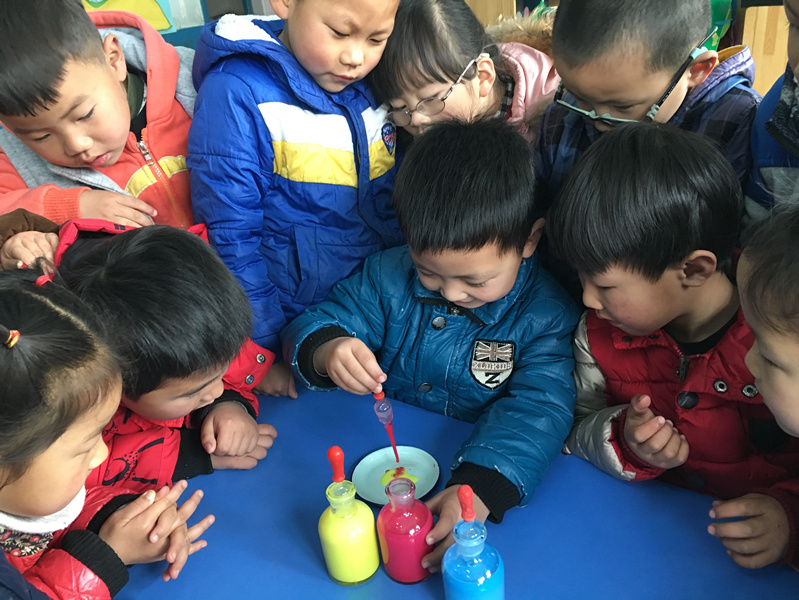 一个简单的小实验不但激发了幼儿的探索欲望,还给幼儿带来了莫大的快乐。虽然实验材料很简单,但由孩子自己发现其中的奥秘,体会制作过程的快乐这才是活动最根本的目的,这也是我园积极追求的科学教育目标。(白蝶)