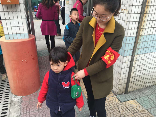 红梅中心幼儿园门口正对着一条主干道,每天入园和离园的高峰时段,大门口的空地上就会挤满了接送孩子的自行车、电动车,大门口的交通一度有些混乱。为保障幼儿来园入园的安全,不少家长自告奋勇地报名,积极争当家长志愿者护园队的一员,为幼儿的出入平安保驾护航。每天幼儿入园和离园时间,家长志愿者便早早地来到“岗位”,协助值班老师管理幼儿园大门外的交通和查看家长的接送卡。