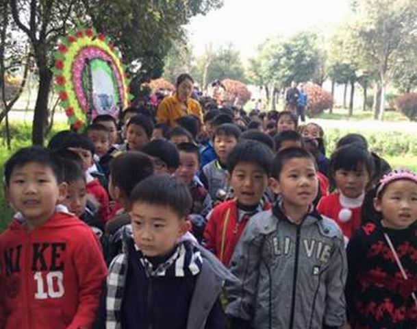 清明时节,日暖风熏,翠柏凝春。为了缅怀革命英烈,深化“感恩”教育和革命传统教育2016年4月1日上午八点钟,郑陆中心幼儿园大班组幼儿开展了清明祭扫烈士活动。