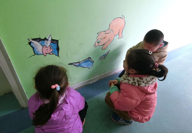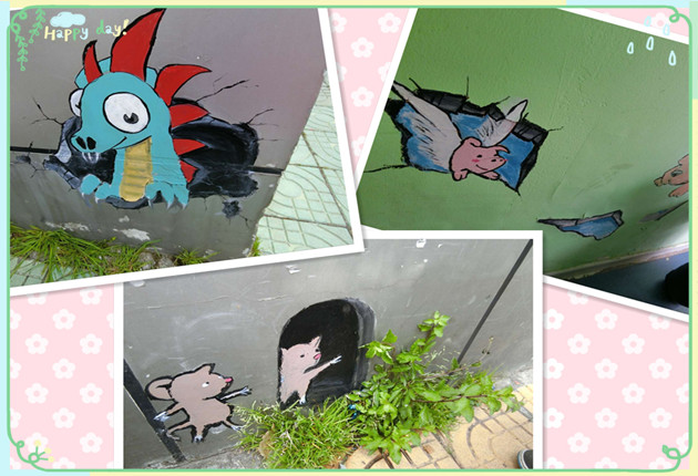 墙角的3D立体画,让孩子在生活的点点滴滴中发现乐趣,为孩子们的探究活动也创设了良好的平台和氛围,更为美丽的校园增添了春天的气息。