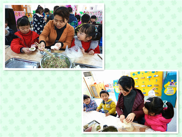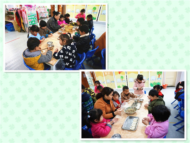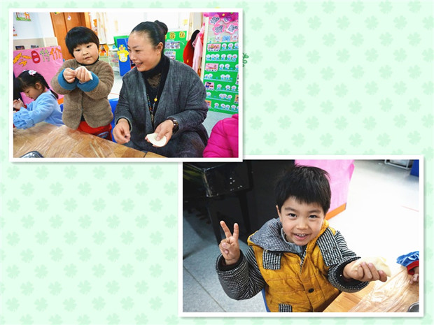 水饺是我国的传统美食,同时也象征着喜庆和团圆。近日天宁实幼中三班的小朋友迎来了期盼已久的家长助教活动——“包水饺”。包饺子活动开始了,首先嘉诺妈妈给孩子们介绍了包水饺所需要的材料,作料等,接着另外三位家长妈妈分别给孩子做了示范。只见她们不急不忙地擀着饺子皮,放馅,包馅,捏边,不一会儿,可爱的饺子就包好了。