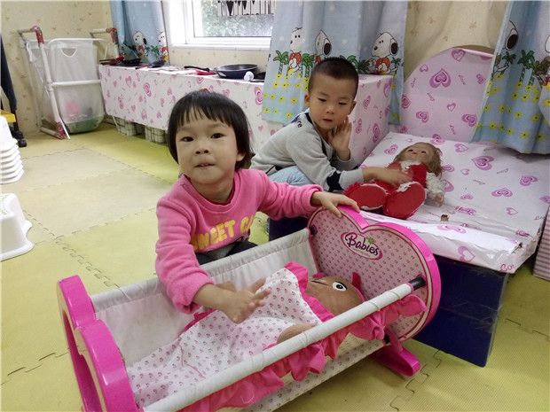 娃娃家游戏是幼儿最喜欢玩的一种游戏,尤其是小班幼儿。娃娃家游戏是幼儿对未来社会角色身份、未来社会角色交往以及未来社会角色情爱的初步体验。在娃娃家游戏中孩子们充当着不同的角色,这些不同的角色就是孩子对未来社会角色身份的初步体验。