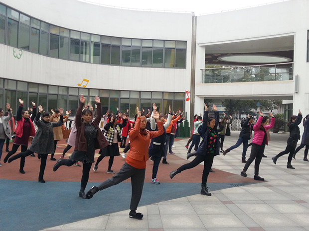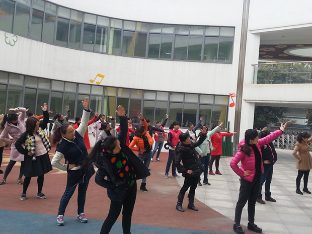 为切实增强我园教职员工的身心健康,增强其体质,使红幼人更加饱满的精神投入各项工作,服务于孩子,我园工会组织全体教职工,每天坚持做“工间操”。