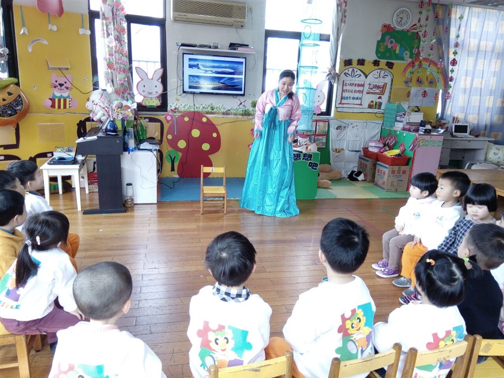 随着国际理解教育的不断推进与深入,小班的小朋友已进入了《走进韩国》的主题,为了使活动的开展更具独特视角,也为了更好地拉近幼儿园与家庭的距离,有效地利用家长资源,开阔幼儿的眼界、拓宽幼儿的思维,常州市吉的堡双语智优幼儿园家长进课堂活动正如火如荼地进行着。