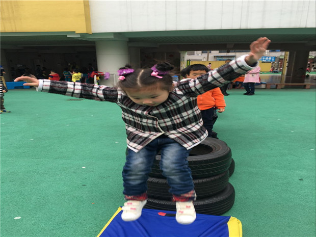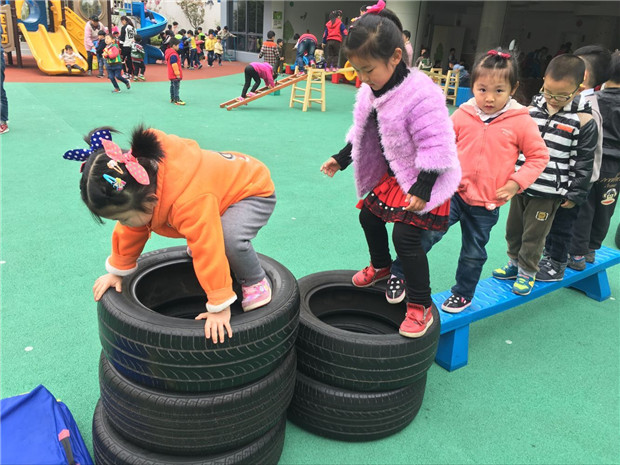 在活动中,老师们结合本班孩子的年龄特点和动作发展情况,精心设计游戏方案,准备活动器械,分别展示了各具特色的游戏活动。有“小狗爬爬”的游戏,抓住幼儿对爬行活动的兴趣,通过形式多样,难度递进的爬行方式,发展了幼儿的平衡以及手脚协调能力;有以轮胎为活动的材料,让幼儿主动探索多种有趣的玩法,发挥了幼儿的主体性和创造性;有“小车快跑”的游戏,为幼儿创设了一个自由宽松的游戏环境,活动中幼儿的反应能力和与同伴合作游戏的能力得到了发展……