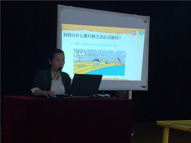 接着邵老师向家长介绍了我园教师在开展“生态运动游戏”项目时所做的一些工作:从改造户外生态运动环境,到为幼儿寻找合适的运动材料以及教师在开展生态运动游戏时对幼儿的观察与分析。此外播放了我园小、中、大班幼儿在生态运动中的视频,让家长看到我们的孩子通过参与生态运动游戏,在体能、智慧、品质等方面都得到了一定的提高。孩子们的突出表现也得到了家长的一致认可。