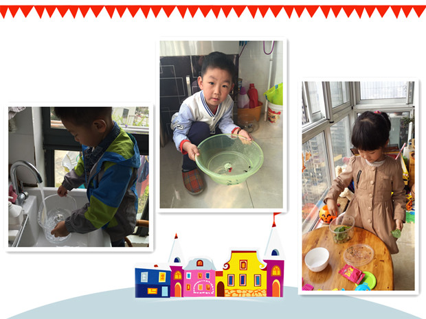 此活动也得到了家长们的大力支持,他们手把手教孩子们照顾小动物的方法同时用照片的形式记录下孩子们细心地照顾小动物:给动它们换水、喂食,带它们散步、晒太阳。孩子们也通过绘画的形式记录下自己是怎样照顾小动物的。