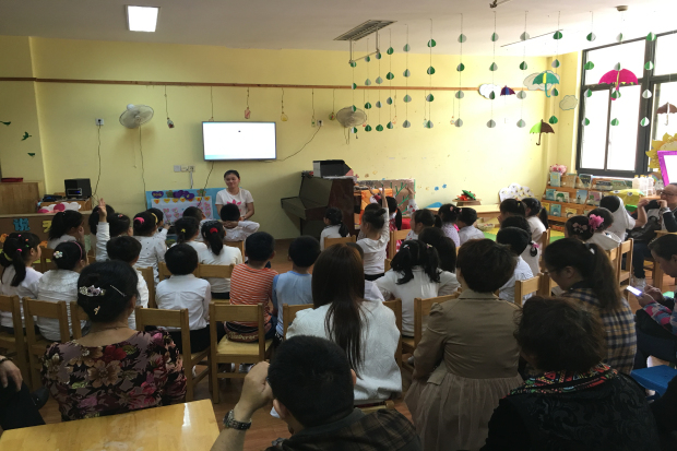 为了使家长能了解自己的孩子在幼儿园的表现,也为了使家长能更进一步了解教育孩子的方法措施,4月22日上午常州市彩虹幼儿园开展了一次家长半日开放观摩活动,每位孩子在家长的陪同下参加了此次活动。