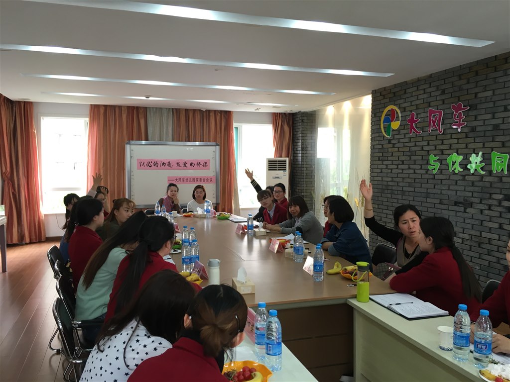 近日,香缇湾大风车幼儿园在三楼会议室召开了家委会会议。参加这次家委会会议的成员都来自于每个班级,都是经过自荐、家长推荐的家长代表,虽然家委会成员都来自不同的班级,但大家都怀着一颗乐于奉献的心,怀着一颗“一切为了孩子”的心走到了一起。