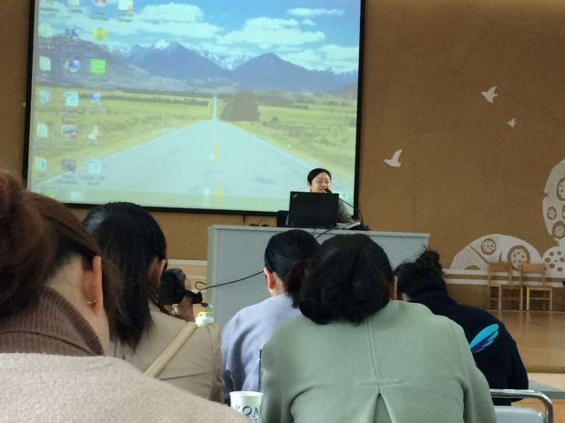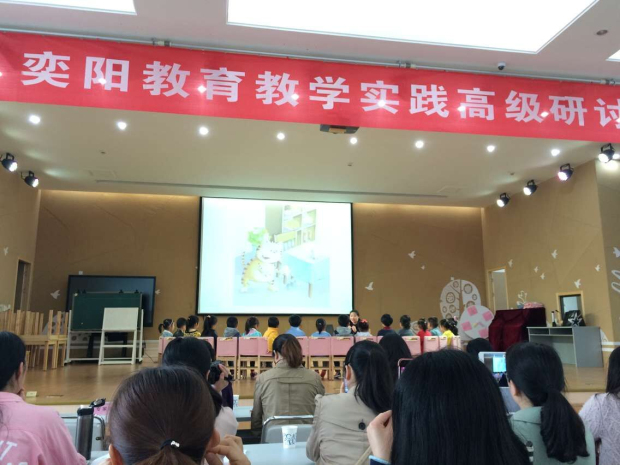 活动在轻松的氛围中进行着,先由两所幼儿园展示了两节优秀的绘本教育活动,之后老师阐述了对于教材的分析和设计,听课老师和专家积极互动对课程给予了高度得评价。之后来至南京晓庄学院儿童研究所的华希颍教授例举了大量实例让大家进一步对于分享阅读有了更深刻的认识,她将阅读分为三个层面:理论基础、材料和流程。通过一段文字,让老师们理解识字与阅读的关系,并不仅仅局限在书面上。通过一副副图片,让老师们理解阅读需要兴趣和策略。她详细阐述了幼儿阅读要素、阅读步骤、阅读方式以及策略等。分析了语言发展与早期阅读两者之间相辅相成的关系,以及如何利用教学技巧引领幼儿进入阅读世界,例如阅读地图、贴纸、家园联系、家园护照等,多种感官感知,能够促进大脑的发育,创设良好的语言环境,让阅读成为孩子的重要工具,从而培养孩子爱读书,爱学习的好习惯。她剖析了孩子在成长的过程中,语言发展、早期阅读之间的关系,让老师们认知正确的语言教育技巧和方法。
