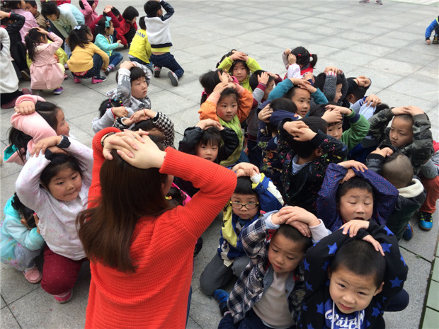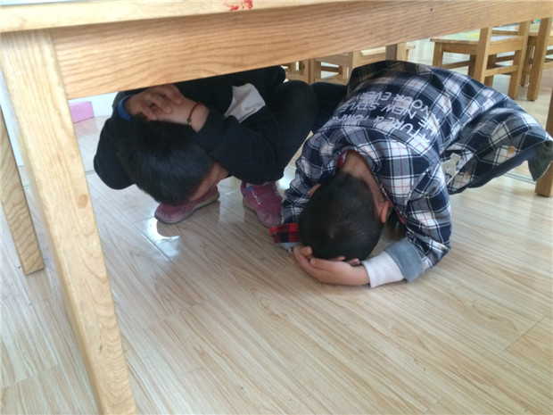 上午10时,随着防空警报的响起,各小组人员快速到位,各班级老师立即告知幼儿“地震了,不要慌”,并指挥幼儿紧急避险(指导幼儿双手护头,蹲在坚固课桌下、教室承重墙角落等)。1分钟后,各班老师组织幼儿按预定的疏散路线迅速有序地撤离到安全地带,各班级立即清点人数向指挥汇报。全园400多名幼儿仅用时3分多钟就全部撤离到空旷地带。