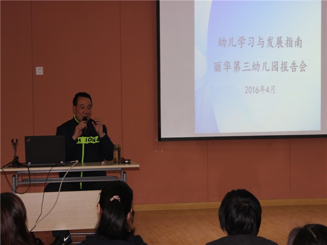 为了让广大的家长掌握科学的教育方法和先进的教育理念、更好地对孩子实施科学的家庭教育。丽华第三幼儿园于2016年4月27日特邀请了中国青少年研究会会员、国家级心理咨询师——李宝星教授来园做了《3--6岁儿童学习与发展指南》家庭教育讲座。
