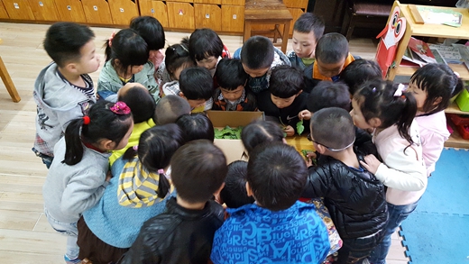 在养蚕的日子里,不仅仅让孩子们了解蚕成长的知识,获得有益的经验建构,积累科学的学习方法,更重要的是获得积极而充满爱的体验——孩子的执着让我们体味生命的存在;孩子们从衣来伸手,饭来张口的小公主、小皇帝到能细心地照顾这些弱小的生命,逐渐地变成了有责任心、有爱心的“小家长”,让我们懂得珍爱生命,在充满爱的环境里,孩子将健康、快乐地成长。养蚕的现实意义和深远的历史意义太大了,可能幼儿园的孩子们还远远不能掌握,但这会是小朋友记忆中最深刻的一节课。(丁宇)