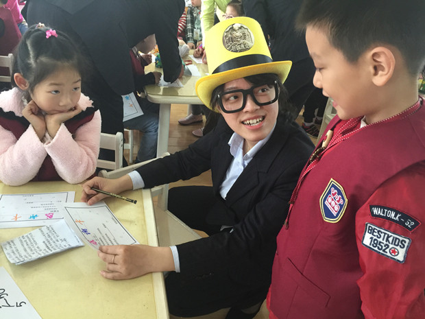活动现场,大二班的孩子们穿上了特制的“小小金融家”马甲,个个看起来派头十足。在沃德博士的带领下,孩子们和“钱”来了一次亲密接触。互动内容从“货币大阅兵”到“财富的密码”,再到“精明小买家”。丰富有趣的活动让所有的孩子都沉醉其中。最令人激动的“数钞票”比赛开始了。交行的工作人员细心地为每个孩子都提供了一份点钞券,从没见过这么多“钱”的孩子们脸上笑开了花。比赛正式开始,“小金融家”们状态百出:不是少一张就是多几张;还有不可思议的是忘记自己数到多少啦;要么数得满桌都是钞票……种种搞笑缓和比赛的紧张气氛,就连坐在后面观摩的银行工作人员也忍不住加入了孩子们的数钱队伍……