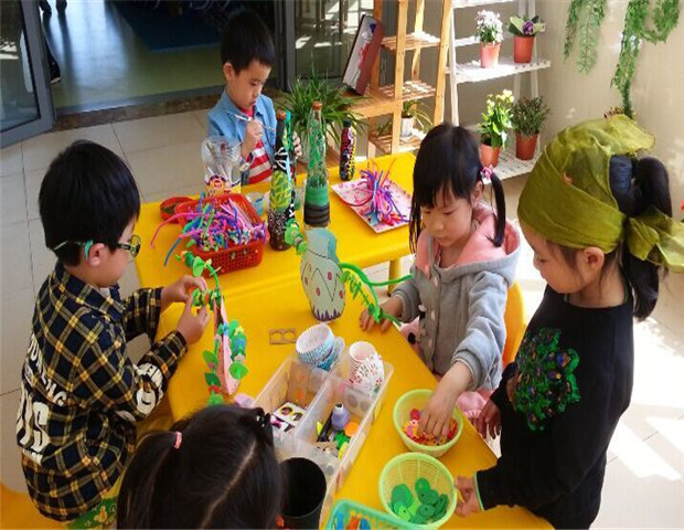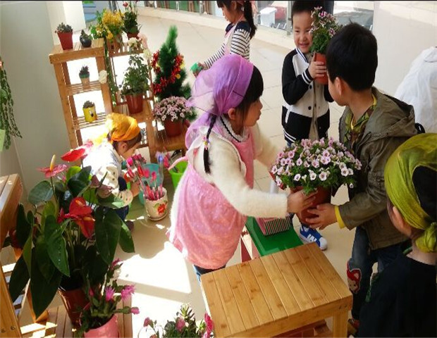 这不,我们幼儿园的“花店”开张了。幼儿可在花店进行电话定花,买花,送花的游戏.。在制作区还放了一些材料,幼儿可以装饰花瓶、花朵,对花店进行小小的装饰,给他们一个自主活动的空间,让幼儿在游戏中以主人的角色去装扮自己的“花店”,在这个实施的过程中幼儿的动手能力也有了一定提高.