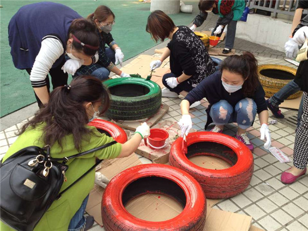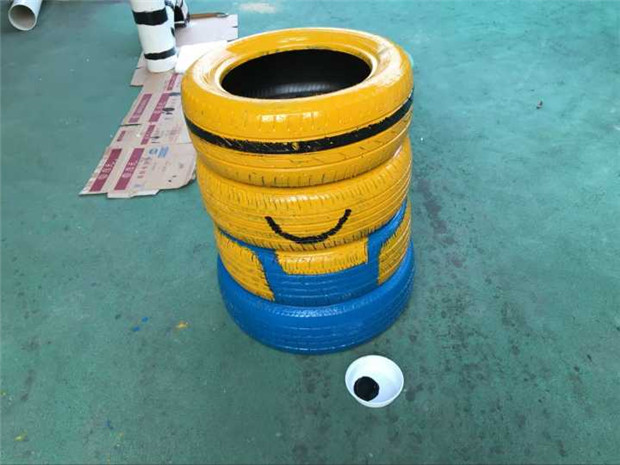 彩虹幼:废旧轮胎换新衣 家园彩绘创意新