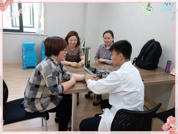 王医师运用现代诊疗仪器结合中医的望闻问切对前来求医的老师进行健康情况诊断,并按照中医理论为每位老师提出身体调养建议。通过中医的诊断,可以发现身体的不适状况,及时进行调养,预防疾病。大多数老师抱着了解养生知识,调养身心的目的,请王医师给开出适合自己的养生“药方”。