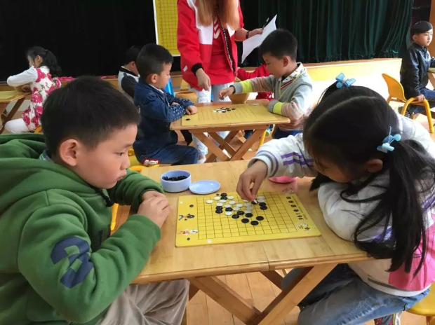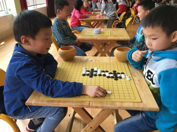 围棋作为中国古代四大艺术(琴棋书画)之一,影响久远。下围棋是一个充满收获、饶有趣味的游戏过程,符合幼儿专心于有趣好玩事物的特点。通过下棋,可以潜移默化地锻炼幼儿的专注力,围棋黑白子变化无穷,落子以后,幼儿目不转睛地关注、思索,可以大大提高思考能力,能够做到考虑问题时全面、冷静、细心,同时可以促使幼儿的学习能力提高,增加他们的观察力、分析能力。