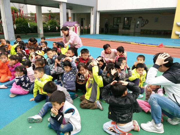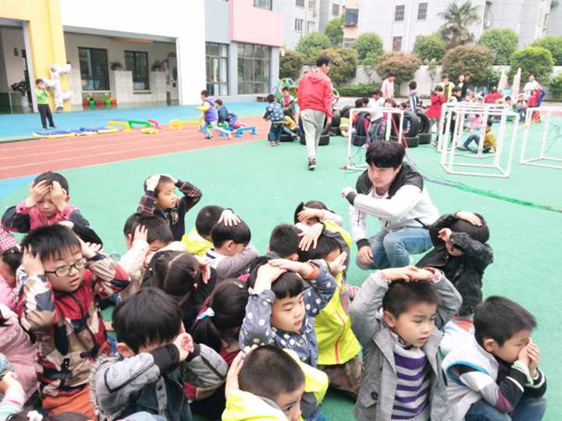 在活动中,随着警报声一响,各班幼儿在老师的带领下紧急避险(指导幼儿双手护头,蹲在课桌下、教室承重墙角落等)安全有序地撤离到空旷的操场。1分钟后,各班老师组织幼儿按预定的疏散路线迅速有序地撤离到安全地带,各班级立即清点人数向指挥汇报。演练结束后,姚怡老师对演练活动进行了总结,肯定了整个演练过程做到急而不乱,稳定有序,达到了预期的目的。