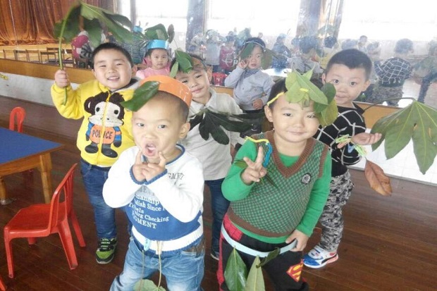《3—6岁儿童学习与发展指南》中指出:“要根据幼儿的生活经验,与幼儿共同确定艺术表达表现的主题,引导幼儿围绕主题展开想象,进行艺术表现。”的确孩子们每次来到户外都会情不自禁的来到小树丛看看小树叶、去到大树下抬头仰望树上不同的叶子、走到草地上拾起树叶看一看、闻一闻、摸一摸,树叶对于孩子们来说总有一种莫名的吸引力。为了让孩子更好的感受树叶装饰带来的自然之美,培养孩子的观察能力和动手操作能力,近日,朝阳幼儿园开展了“树叶小精灵,闪耀T台秀”的活动。