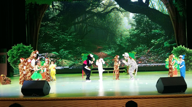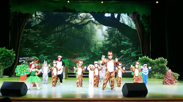 孩子们表演的绘本剧《老虎照镜子》生动、有趣。虽然比赛的安排节目排得比较靠后,但是孩子们丝毫没有被等待时间长而影响自己的表演心情。在后台等待的过程中,孩子们能认真欣赏别人的表演,并鼓励自己舞台上一定会全力以赴。看!终于到茶幼的孩子和家长上场了。一个个“小老虎”表现非常的出色,他们把“老虎”的角色表演得生动逼真,而扮演“大老虎”的家长朋友,更是把“大老虎”的威风展示出来了。扮演其它小动物的孩子们,每个人都情绪高涨,认真的表现自己的角色。