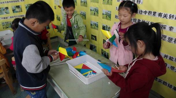 我们的旋转之旅第一站将由体验出发:在这里,我们首先要带幼儿走进“旋转乐园”,去共同体验各种旋转器械和游戏给自己带来的旋转感觉;接下来,幼儿将全身心的走进旋转的探究天地,他们会用自己的眼睛去寻找、发现、记录生活中各种各样的旋转现象,了解风车、陀螺等高各种旋转德奥秘,在次过程中,他们那与生俱来的好奇心和探究欲望将会得到有效地挖掘、发挥。