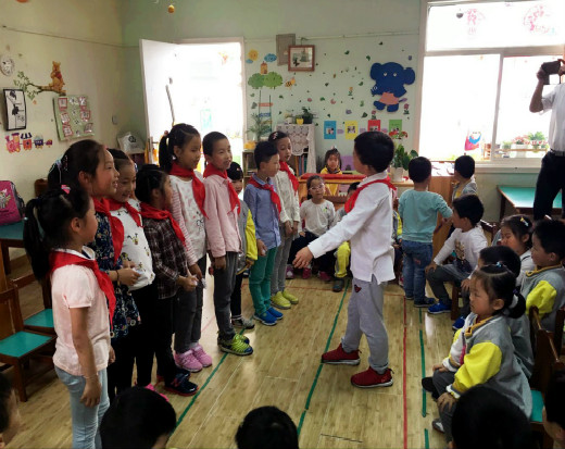 许老师和倪老师牵着他们重温了原来的教室,大家坐在一起,说说这一年来的变化。争先恐后地想和老师们分享在小学里学到的新本领和自己的理想抱负,老师们都感到十分欣慰,不时安慰、鼓励着他们。接着,孩子们给老师和小班的弟弟妹妹们演唱了《少年先锋队对歌》、《上学歌》,听完,小班的小朋友都十分激动,也想给哥哥姐姐们露一手,一起表演了童话剧《小猫拔牙》和舞蹈《小青龙》,哥哥姐姐们看得赞不绝口,鼓掌齐声叫好。小班的小朋友和哥哥姐姐们拥抱在一起,你们都是老师最爱的学生。时间不知不觉过去了,孩子们依依不舍的和老师们告别。