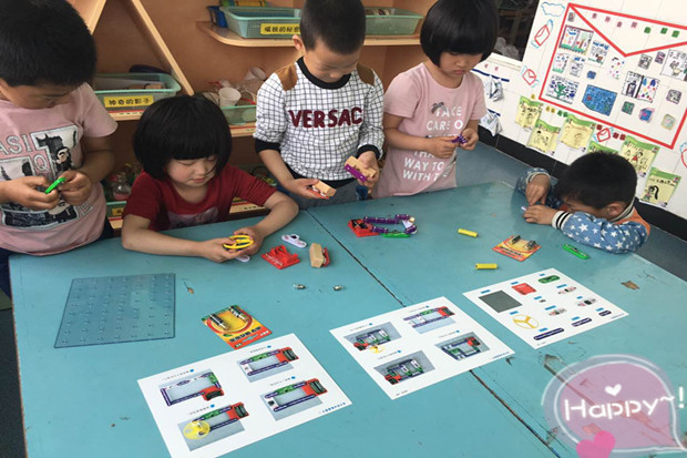 为了让幼儿自主观察、自主探索、自主发现,本月我园大班开展了 “小不点探索”活动。每周有目的组织一个班的小朋友去科探区进行探索活动,活动中幼儿运用各种感官,动手动脑,探究问题。有的用磁铁这儿碰碰,那儿吸吸,知道了磁铁会吸引铁的物品;“同样的两块磁铁,有时一碰就相互吸在一起,有时却相互排斥”这一现象激起了孩子们的探索欲望,几次探索之后,他们明白了磁铁“同性相斥,异性相吸”的特性。有的小朋友探索发现小电珠发光的方法,他们自己安装电池,知道只有把正负极相连,接上电池,使电路接通,小灯泡才能亮的道理……幼儿园还引进了“亿童”玩具,多样的材料诱发了孩子更强烈探索的欲望,孩子们与材料进行充分地互动,他们相互合作,相互竞争,从而增长知识和经验。