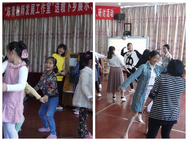为了进一步提升全体工作室成员的音乐教学理念和专业素养,更好地落实让幼儿在游戏中快乐玩音乐的教育理想,同时也为了更好地将优质音乐教育资源辐射到周边地区及乡镇幼儿园。近日,“陈青教师发展工作室”核心成员,走进武进区潘家幼儿园,开展了一场以“跨区交流,共促成长”为主旋律的音乐教学分享活动。整整一天时间,陈青教师发展工作室成员与来自雪堰镇潘家幼儿园、雪堰中心幼儿园、漕桥幼儿园、南宅四所幼儿园的老师一起享受着静心研修的过程,共同品味着工作室集体智慧的结晶。