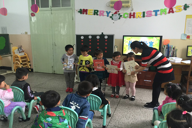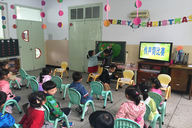 我们为此次游戏创设了丰富的活动场景,以班级(每班五位幼儿)为单位进行游戏。游戏分为四个环节,第一轮“传话游戏”,第二轮游戏“摘果子”,第三轮游戏“喂喂小动物”,第四轮游戏“动物怎么叫”,四轮过后得到五角星最多的班级为胜,由老师为赢得小组颁发奖品。游动结束了,小朋友们还在那意犹未尽讨论着,指手画脚的比划着……孩子们在有趣的语言情境游戏中观察、学习、模仿,感受运用语言的基本规则和积极作用,在交流中积累表达的经验,培养语言表达的良好习惯。