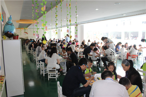 此项活动,得到了许多家长的积极响应。在现场制作的过程中,家长和孩子们思维活跃,创意新颖,孩子根据自己的生活经验和对事物的理解来想象设计画面,并在家长的帮助下完善画面,附上文字说明,亲子合作默契无比。