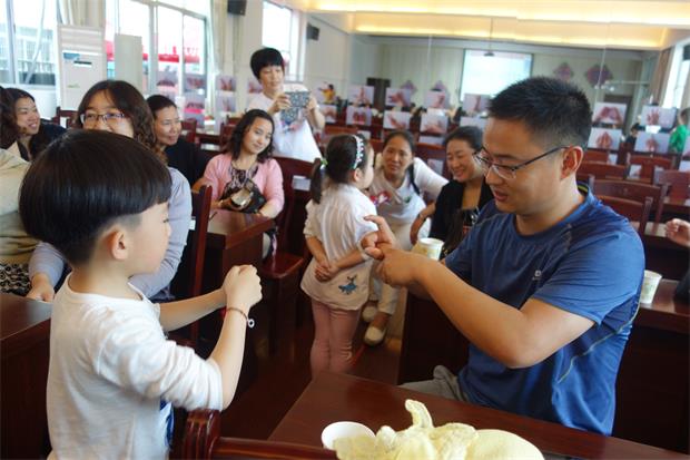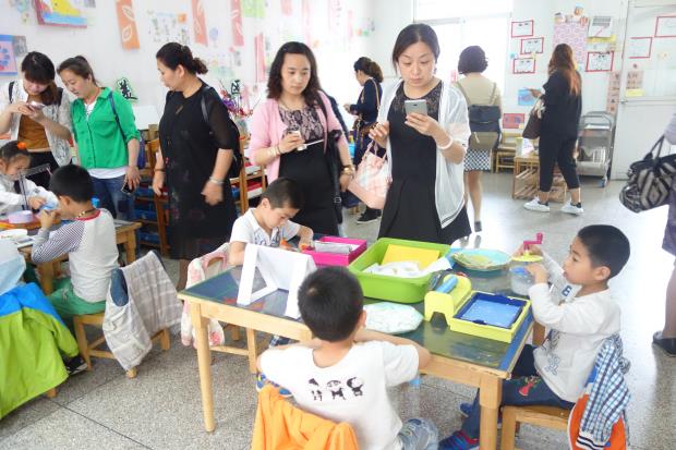 本次参观分为观摩环境与游戏、观看特色展示、聆听经验汇报三个环节。在观摩区域游戏过程中,各班老师本着尊重孩子身心发展规律、保护孩子创造力的原则,和孩子一起开发了许多好玩的游戏。如模特造型秀、瓶盖创意玩、巧手布艺坊、神奇透视画、万能造纸机等给参观的老师留下了深刻印象。老师们纷纷拿出相机,不停地按动快门键,根本停不下来。在特色展示环节,孩子们首先展示阳湖拳。徒手32式、东青板凳拳、阳湖棍、紫云刀,孩子们将每一个套路,每一个招式都演绎得有模有样,博得了满堂彩。随后手指游戏互动中,孩子们从变手型魔术开始,一步步带着客人老师走进手指游戏、畅玩手指游戏,真实感受着手指游戏的有趣、灵动、创新。最后,蒋惠娟园长就幼儿园课程游戏化实践以来的思考、行动与感悟作了接地气的介绍。